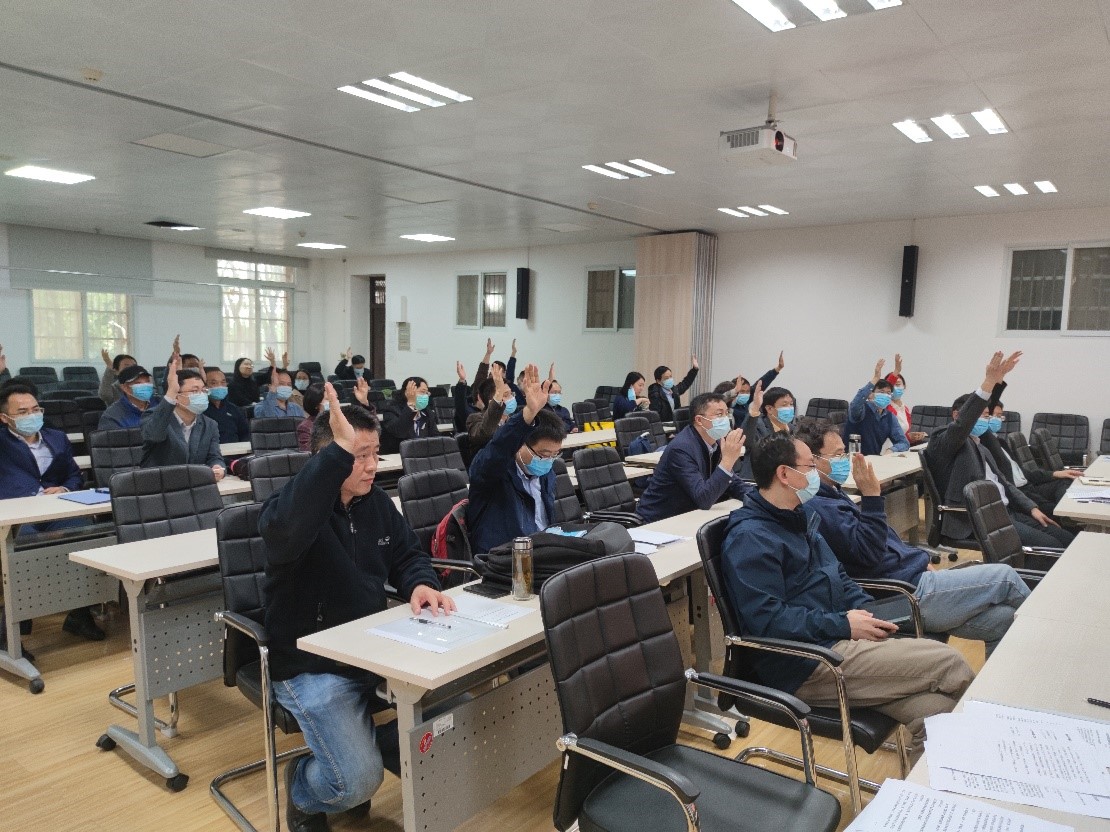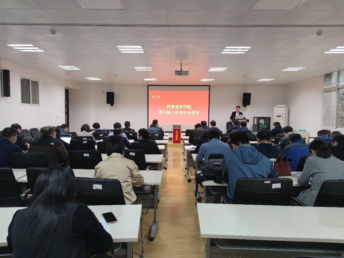接下来会议举手表决通过了大会监票人、计票人名单,全体二级教代会代表对候选人进行无记名投票,选举产生了学院第五届工会委员会委员名单,陈京文等7名代表当选为新一届工会委员会委员。