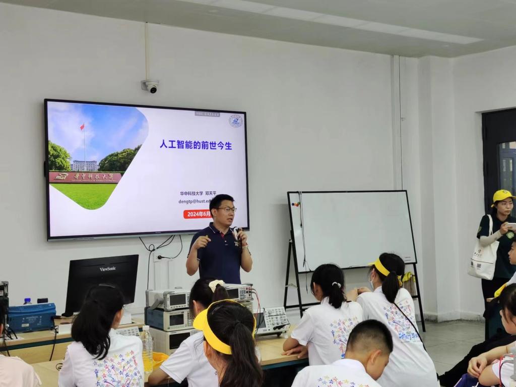 首先,邓天平教授为小朋友带来精彩的科普报告:《人工智能的前世今生》,借助精心剪辑的视频,带小朋友回到1956的达特茅斯会议,了解了人工智能的起源。通过观看卡斯帕罗夫与深蓝、AlphaGo与李世石的比赛,小朋友们明白了在国际象棋和围棋的对弈中,人工智能已经远超人类,然后,结合Open AI的ChatGPT和Sora的最新技术,给小朋友介绍了在特定领域人工智能的飞速发展,整个过程气氛热烈,互动精彩,邓天平教授还为积极互动的小朋友准备了特别的六一儿童节礼物,报告结束后的提问环节,小朋友的很多问题,也引人深思:“人工智能最后会完全取代人类吗?”,“人工智能如此先进,那我们不是很难找到工作了?”,“人工智能的出现,是好还是坏?”...... 邓教授分别从专业角度给予了精彩的回答。