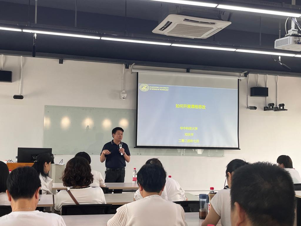 随后,邓天平教授介绍了教学实验中心党支部的基本情况,然后给崇仁路小学一行做了《如何开展课程思政》、《BOPPPS高效教学法》的报告,各位老师反响热烈。