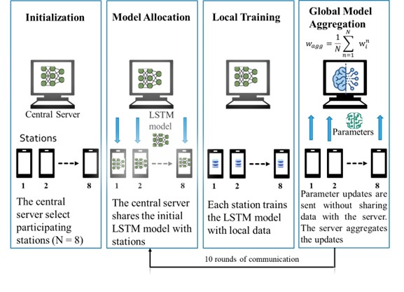 该研究成果针对博茨瓦纳等气候多变且极端天气频发的地区,提出了一种创新的天气预测解决方案。实验结果显示该模型能够达到高达97%的R2分数,证明了其在精准预测天气模式方面的能力。此外,该论文还强调了数据隐私保护和带宽效率的重要性,仅传输模型参数用于聚合,既确保了敏感信息的安全,也优化了通信效率,展现了联邦学习在天气预报领域的巨大潜力。