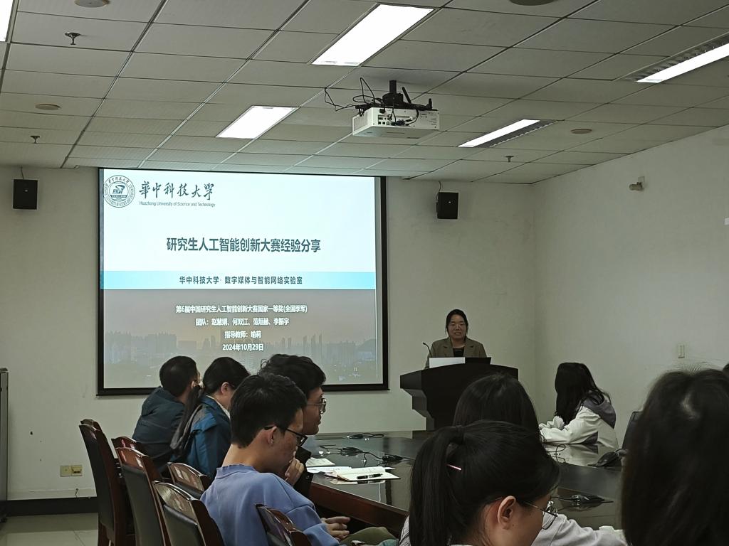 在后续的学习环节中,王承志分享了习近平总书记在《论教育》中的重要论述——在实现中国梦的生动实践中放飞青春梦想,他以华科大学子郑钦文等人的事迹为例,阐述了青年在实现中国梦伟大征程中的使命和责任。赵慧娟代表“喻小白”团队分享了参加中国研究生人工智能创新大赛获奖的经验与感悟,她介绍了团队的基本情况及参赛经历,并从项目准备、团队协作和参赛收获等方面做了分享。