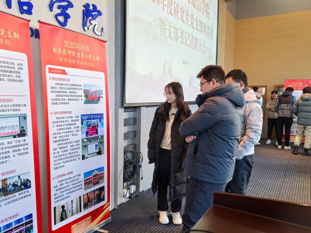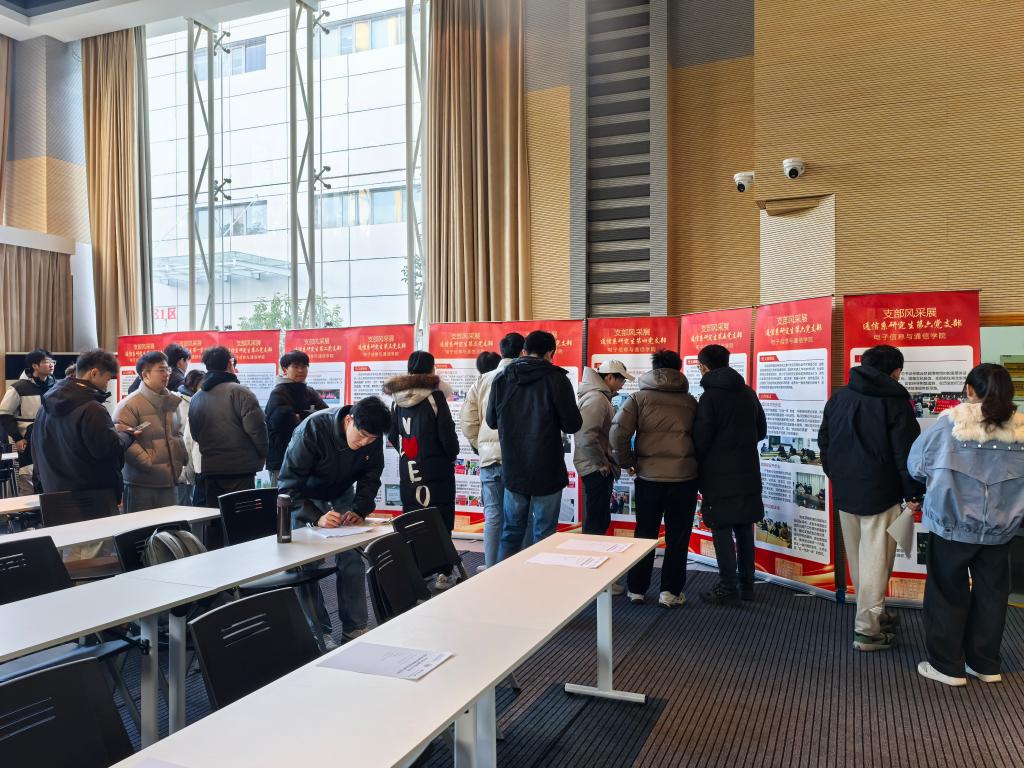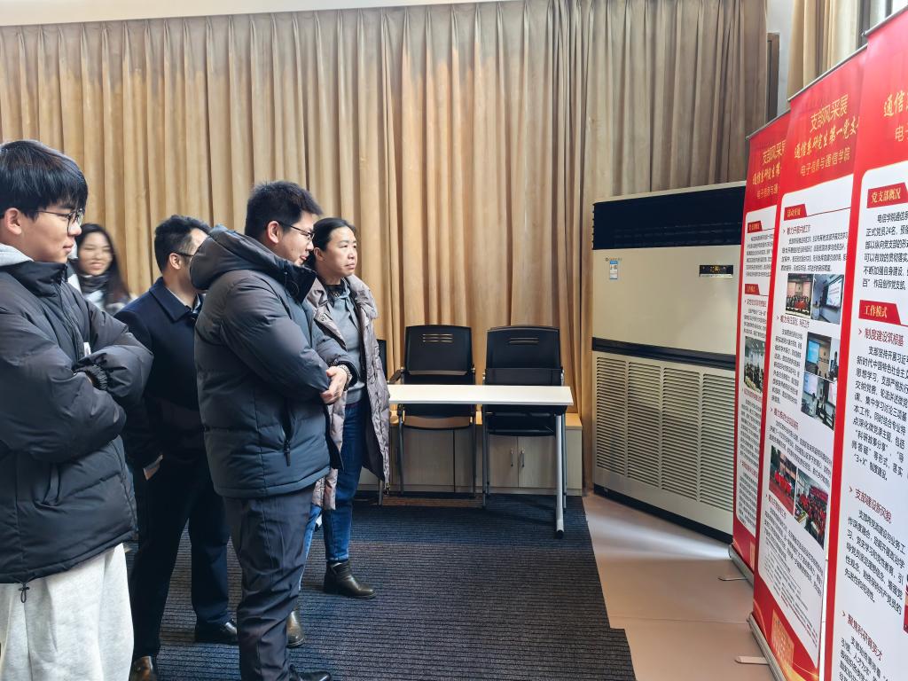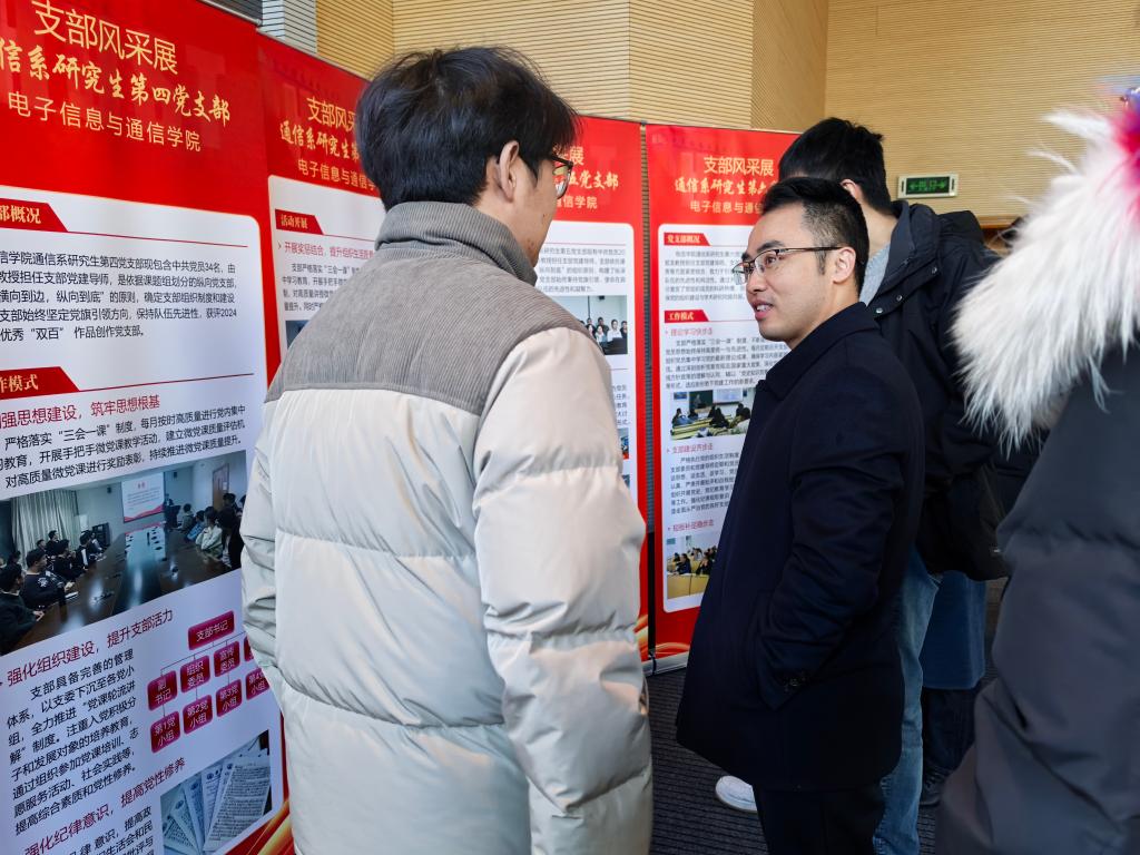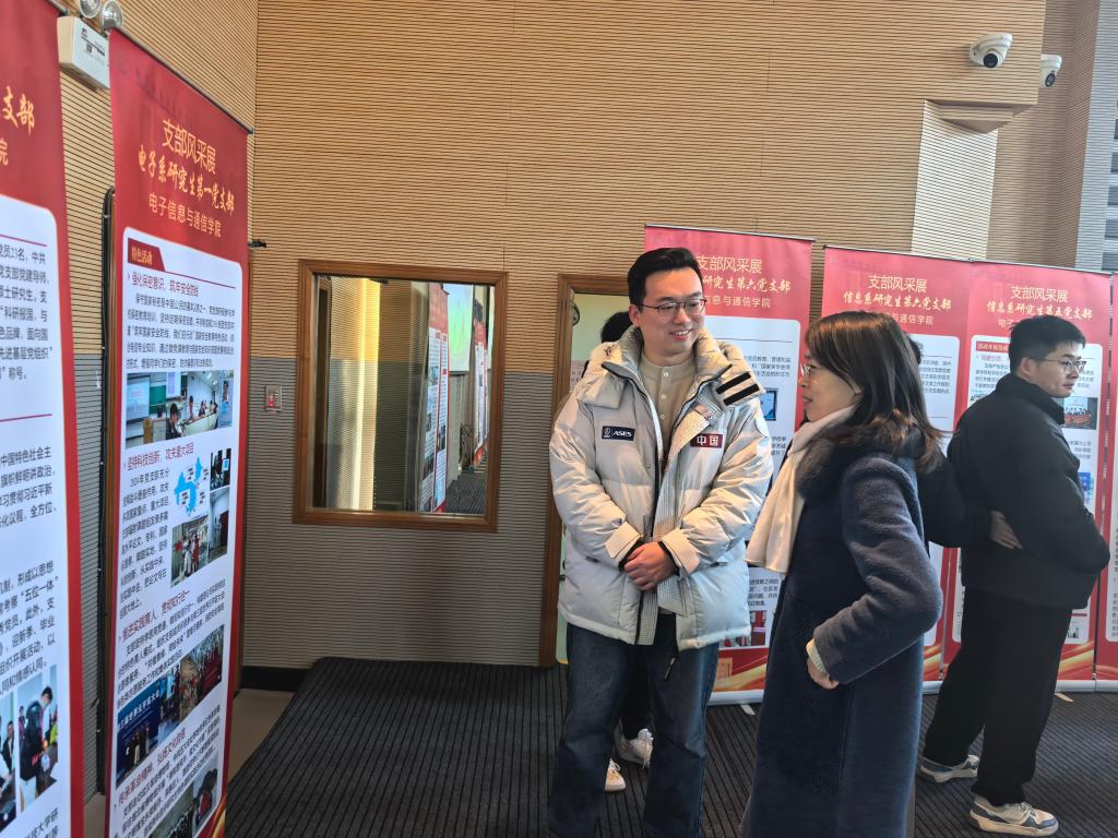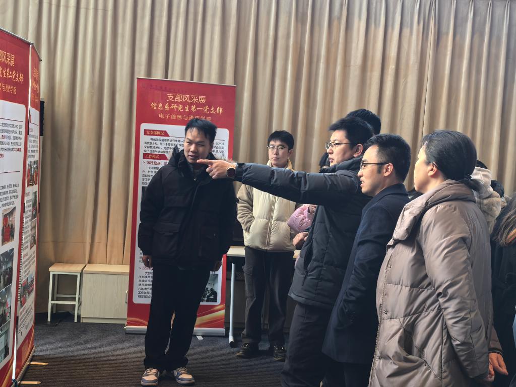 在支部风采展参观交流环节,与会老师同学参观15个支部精心制作的展板,各支部书记围绕支部建设思路、特色做法、建设成效等方面,向与会人员介绍支部情况,与会师生和各支部书记交流支部工作情况,现场气氛热闹非凡。