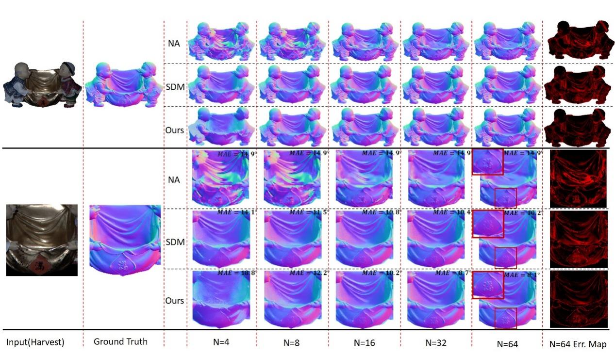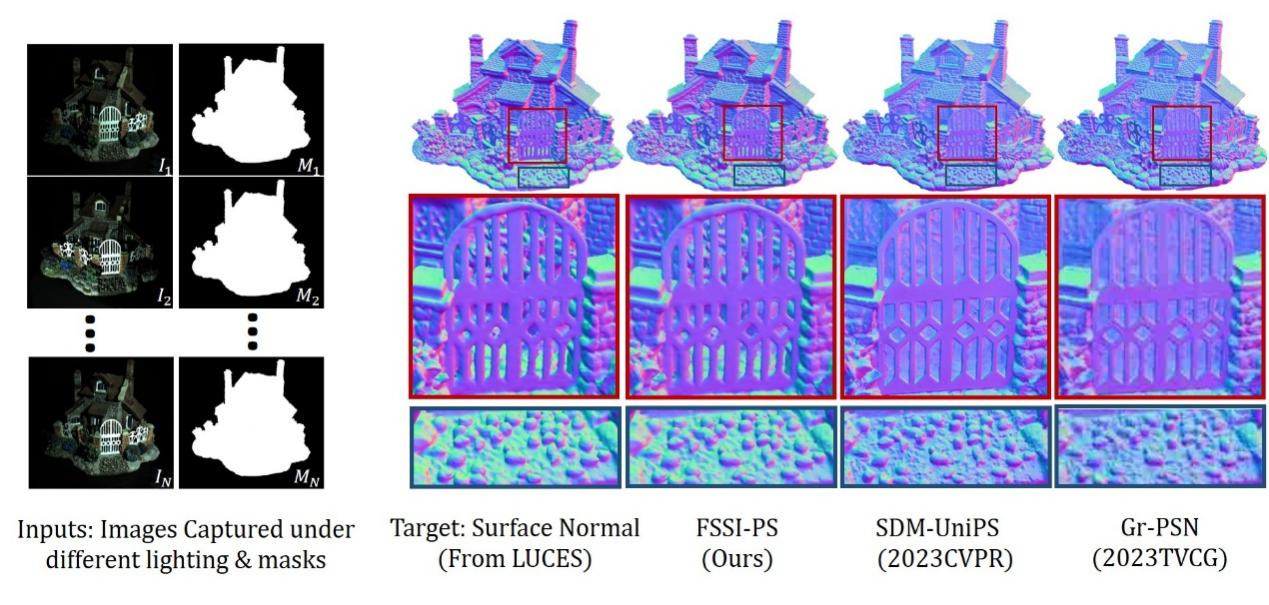 该论文聚焦于真实物体的光度立体重建。光度立体是计算机视觉或计算机图形学中的一项重要任务,其将同一视角不同光照信息的图像作为输入,以还原目标物体的法线为目标。还原的物体法线可以广泛应用于AR、VR、深度估计、三维重建之中。